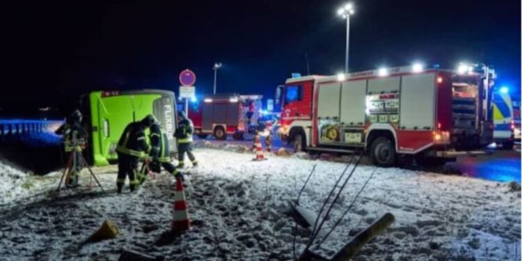 Dy persona humbën jetën dhe katër u lënduan rëndë kur një autobus u përmbys në verilindje të Gjermanisë të shtunën, tha policia.