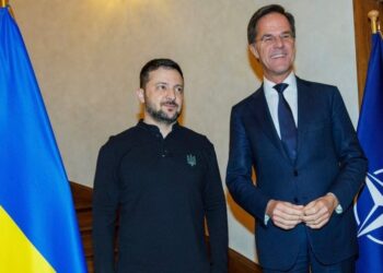 Presidenti ukrainas Volodymyr Zelenski pati bisedime me Sekretarin e Përgjithshëm të NATO-s Mark…