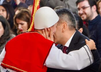Nipi i Ismail Qemalit përlotet gjatë ngritjes së…