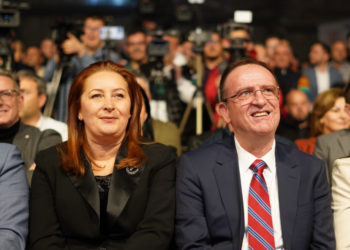 Bashkëshortja e Arben Taravarit, kandidatit për president në Maqedoninë e Veriut, Nora Taravari uron…