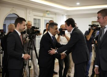 Sot para fillimit të konferencës për shtyp të kryeministrave Hristijan Mickoski dhe Albin Kurti për…