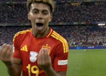 Me një kapele në kokë me ngjyrat e Spanjës dhe me medaljen e artë në qafë, Lamin Yamal ka festuar në…