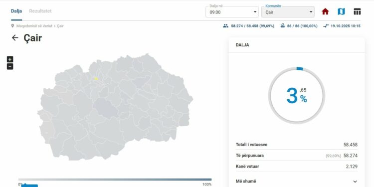 Sipas të dhënave të fundit nga Komisioni Shtetëror i Zgjedhjeve, në Komunën e Çairit deri në orën 09:00 kanë votuar 3,65 për qind e qytetarëve me të drejtë vote.