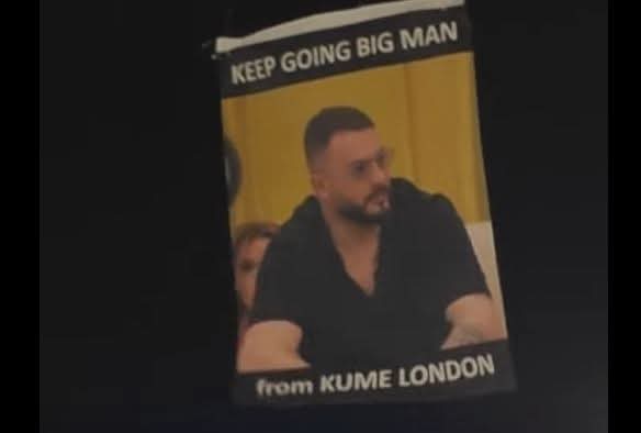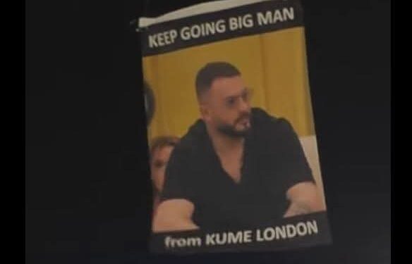 “Keep gong big man from Kume London”, shkruhet në dronin që i erdhi Limit.