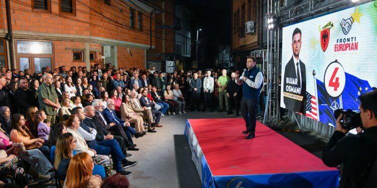 “Nuk janë këto zgjedhje të zakonshme, nuk janë këto zgjedhje të rëndomta, janë zgjedhje historike. Vendi gjendet para një udhëkryqi historik, këto zgjedhje janë betejë mes konceptit të integrimit dhe konceptit të integrimit karshi konceptit të izolimit, konceptit të bashkëjetesës karshi konceptit të urrejtjes dhe konfliktit, konceptit të progresit karshi konceptit të kthimit mbrapa dhe këtë dua ta dëshmoj sepse jam njeri që kam qasje në informacione të cilat janë që nuk i ka edhe publiku. Para 30 minutave lëshova një kumtesë në emër të Ministrisë së Punëve të Jashtme dhe paralajmërova se mund të ndodhë një konflikt shumë i madh në Lindjen e Mesme dhe u rekomandova gjithë njerëzve tanë nëse janë në Lindje, diku afër Iranit apo Izraelit ta lëshojnë sa më shpejt atë zonë pasi paralajmërimet nga NATO janë se pritet një konflikt i gjërë atje. A e dini se cka do të thotë një konfikt i madh në Lindjen e Mesme bashkë me agresionin rus në Ukrainë, kjo do të thotë se asnjëherë nuk kemi qenë më afër Luftës së Tretë Botërore. Fronti për Europë është përgjigje për kërcënimin më të madh që i ndodh botës, mund ti ndodhë Ballkanit, por mund ti ndodhë edhe Maqedonisë së Veriut. Ne kemi dy oferta alternative në këto zgjedhje, kemi ofertën e Frontit Europian që ofron anëtarësim në Bashkimin Europian në pesë vitet e ardhshme deri në vitin 2030 dhe kemi ofertën e nacionalizmit që kërkon 61 deputetë për të na përjashtuar ne nga vendimmarrja”, theksoi Osmani.