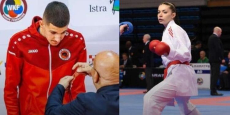 Karateistët Rexhep Rushiti dhe Rudina Aliu triumfojnë në Kroaci, kthehen në Shkup me medalje e fitore