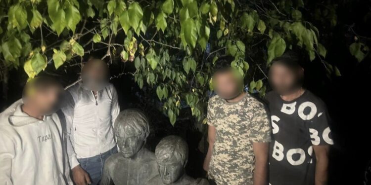 “Më 17.09.2025, rreth orës 18:30, në Varrezat e Qytetit në Butel, policët e SPB Shkup – Stacioni Policor Çair, për shkak të dyshimeve për kryerjen e një vepre penale sipas nenit 236 të Kodit Penal, kanë arrestuar O.Sh. (49), M.Sh. (22), Lj.F.A. (26) dhe Z.R. (26), të gjithë nga Shkupi. Në automjetin “Peugeot” me targa të Shkupit, që drejtohej nga Z.R., ndërsa të tjerët ishin pasagjerë, është gjetur dhe konfiskuar një bust prej bronzi me figurë të dy trupave njerëzorë në pozicion ulur, njëri në madhësi më të madhe dhe tjetri më i vogël, që ishte marrë nga varrezat. Nga Z.R. është konfiskuar edhe automjeti, ndërsa pronarja e bustit ka bërë identifikimin. Personat janë ndaluar në stacionin policor dhe, pas dokumentimit të plotë të rastit, ndaj tyre do të ngrihet kallëzim përkatës”, thonë nga MPB./tv21.tv