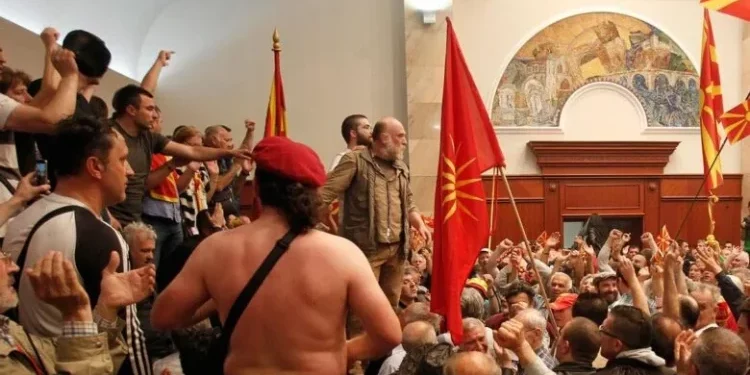 Banditë kanë pasur mbështetje edhe nga Hristijan Mickoski, i cili atë ditë ishte para Kuvendit të Maqedonisë.