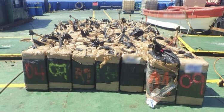Sekuestrimi i rreth 100 pakove me kokainë, i kryer në det u realizua me mbështetjen e një avioni ushtarak.