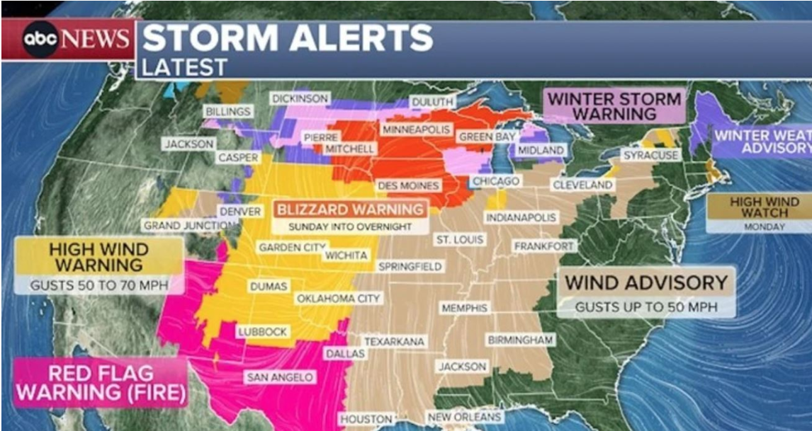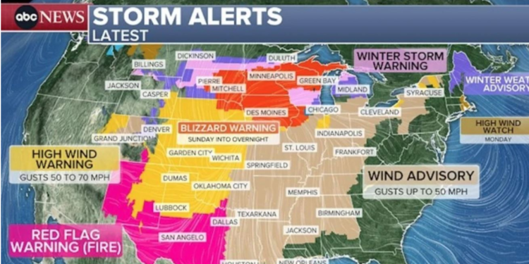 Sistemi pritet të rrisë rrezikun e zjarreve në të gjithë SHBA-në qendrore, duke sjellë shi, stuhi dhe borë në pjesë të verilindjes.