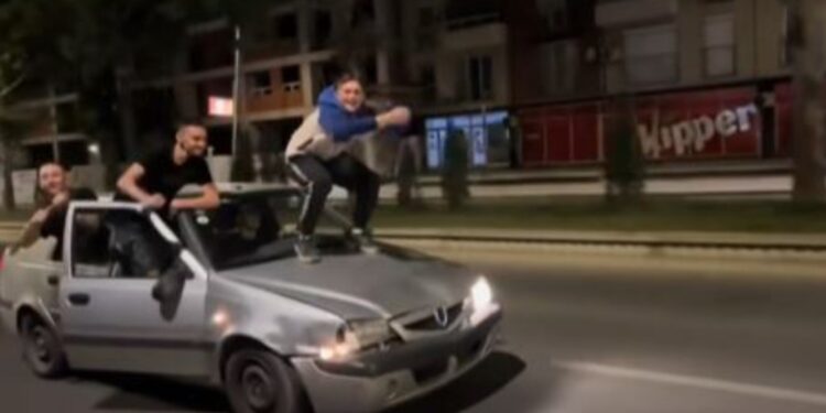 Njëri mbi veturë, njëri vallëzon me derë të hapur e tjetri ka dalë në dritare. Vetura pa targa nëpër rrugët e Shkupit, drejtohej nga një 20 vjeçar i cili nuk e ka as patentën e shoferit, duke rrezikuar sigurinë në komunikacion. Këta të rinj ishin duke realizuar trendin e famshëm nga TIkToku, Aura farming. Duke dashur të bëhen të famshëm përfunduan në polici. Nga Ministria e Brendshme thonë se janë identifikuar adoleshentët, janë ngritur akuza dhe se po ndërmerren masa shtesë për të sqaruar plotësisht rastin.