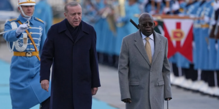 Presidenti nigerian Bola Ahmed Tinubu, i cili po zhvillon një vizitë zyrtare në Turqi, pësoi një incident gjatë ceremonisë së pritjes në Pallatin Presidencial në Ankara, ku u prit nga presidenti turk Recep Tayyip Erdogan.