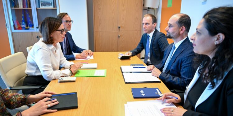 Në kuadër të vizitës dyditore pune në institucionet e Bashkimit Evropian në Bruksel, Ministri për Çështje Evropiane Orhan Murtezani sot mbajti takim edhe me Valentina Superti, Drejtoreshë në Drejtorinë e përgjithshme për zgjerim dhe fqinjësi lindore (DG ENEST) në Komisionin Evropian.