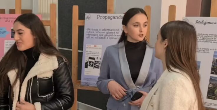 Të shqetësuara për ndikimin e gjërë të mediave sociale në jetën e përditshme të bashkëmoshatarëve, Esmeralda, Eralda, Senada dhe Albina, studente në ciklin e ulët për mësuesi në Universitetin e Shkodrës, kanë çelur ekspozitën “Si ti mbijetojmë epokës së rrjeteve sociale përmes edukimit për median dhe informacionin”.