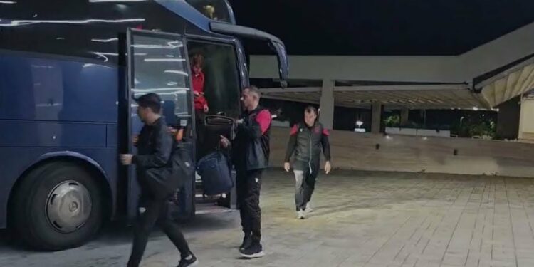 Mbrëmjen e sotme, nënë forca të shumta sigurie, ekipi shqiptar është shoqëruar drejt hotelit ku do të akomodohet.