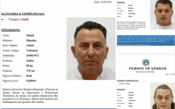 Policia e Kosovës, Drejtoria Rajonale e Policisë në Gjilan, fillimisht ka shpallur në kërkim Mefail Shkodrën me banim në Gjilan, ndërsa në listën e kërkimit ka shtuar edhe dy persona të tjerë me autorizimin e Prokurorisë Themelore në Gjilan, me qëllim lokalizimin dhe arrestimin e të dyshuarve.