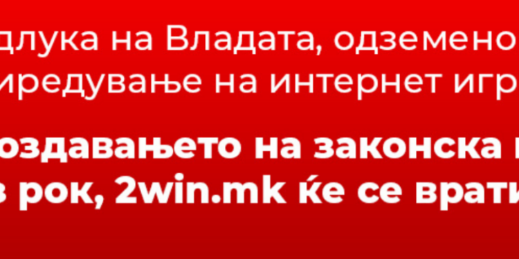 Platforma për lojëra të fatit në internet e Video Lotarisë Shtetërore Kazinos Austria, 2win.mk do të mbyllet. Ky subjekt njoftoi për hapat që do t’i ndërmerr për rikthimin e depozitave të qytetarëve nëpër xhirollogaritë e tyre bankare.
