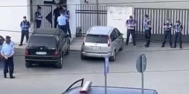 Në krye të uniformave blu raportohet se ndodhet Ardi Veliu, i cili si drejtues i shoqërisë “KAYO” pretendon se godina i përket kompanisë së prodhimit të armëve.
