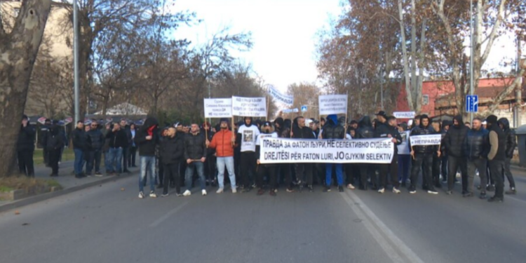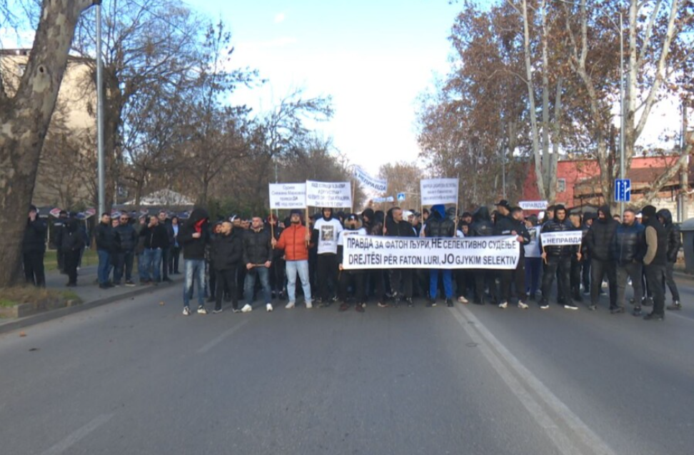 Me thirrjen kryesore “Drejtësi për Faton Lurin, jo gjykim selektiv”, shumë qytetarë marshuan në formë proteste nga Çairi deri te Gjykata Penale në Shkup, përcjell TV21. Protestuesit e konsiderojnë të padrejtë dënimin me 11 vjet burg ndaj Lurit, i cili më 1 korrik 2025 me motoçikletë përplasi për vdekje 68-vjeçarin Jugosllav Nikollovski. Përndryshe, sipas autoriteteve, ditën e aksidentit, 25-vjeçari Faton Luri, duke drejtuar një motor Kawasaki pa patentë shoferi dhe pa helmetë, në shtegun për këmbësorë në bregun e Vardarit, përplasi 68-vjeçarin Nikollovski, dhe sipas hetimit, pas aksidentit ai ishte në arrati për dy ditë. Por këtë e mohon bashkudhëtari i tij, Hamza Ibrahimi, i cili thotë se Fatoni ka qëndruar në vendngjarje, është përpjekur ta ndihmojë të moshuarin.
