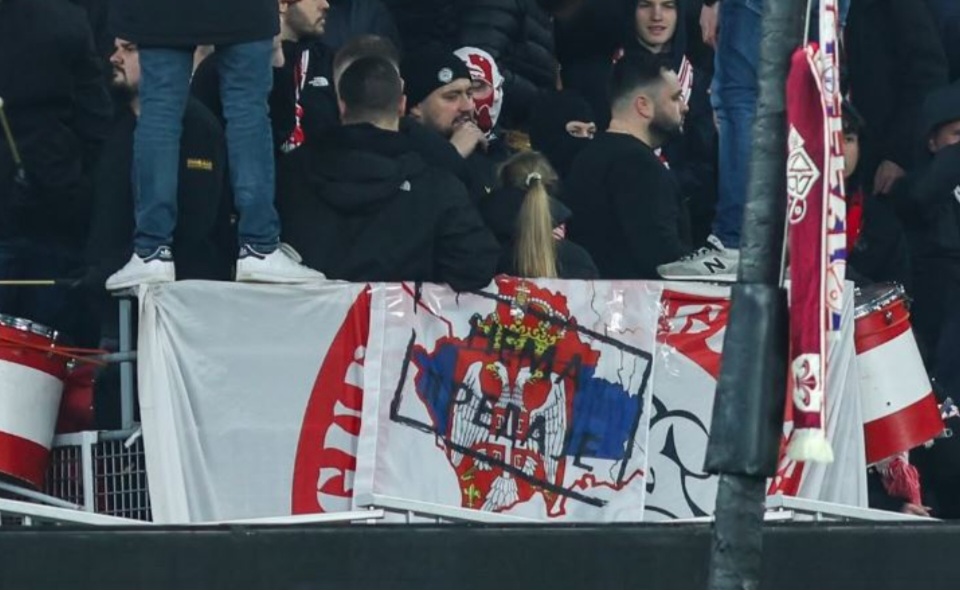 Një grup tifozësh të skuadrës franceze kanë shpalosur një banderolë ku shfaqej harta e Kosovës me ngjyrat e flamurit serb dhe mbishkrimin provokues “Jo dorëzimit” (Nema Predaje).