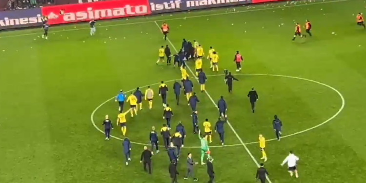 Në fushë ndodhi një rrahje e madhe mes tifozëve dhe futbollistëve të Fenerbahces, madje as policia nuk arriti t’i ndalonte.