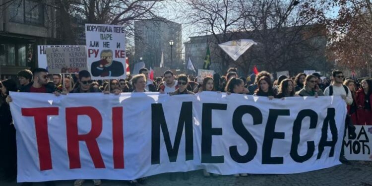 Protesta organizohet në tremujorin e tragjedisë në Novi Sad, e cila ka nxitur një valë të madhe protestash, në të cilat kanë marrë pjesë mijëra persona.