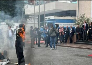 Fotografi nga protesta e deputeteve te opozites ne Shqiperi para Kuvendit. Foto: ATShĺpp 24…