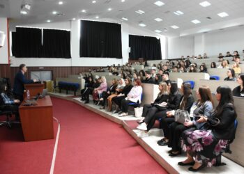 Në Fakultetin Filozofik të Universitetit të Tetovës, më 2 maj 2024, studiuesja nga Tirana, njëherit…