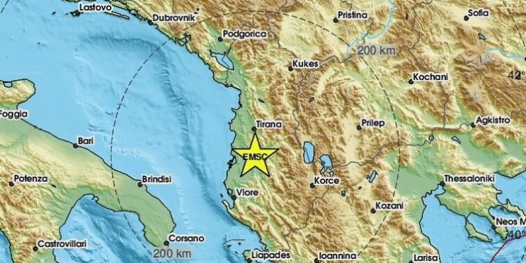 Epiqendra e tërmetit është regjistruar 48 kilometra në veriperëndim të Tiranës, 35 kilometra në veriperëndim të Durrësit.