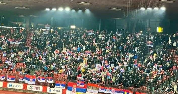 Derisa emrat e lojtarëve të Zvicrës janë thirrur para ndeshjes me Serbinë, ka pasur fishkëllima të tifozëve serbë në tribunat e stadiumit në Zurich.