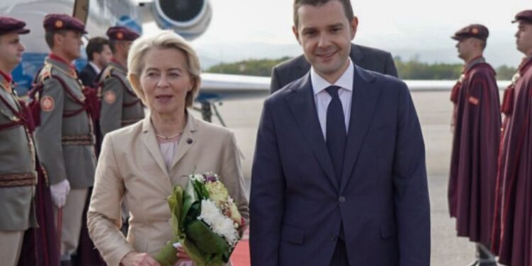 Ministri i Punëve dhe Tregtisë së Jashtme, Timço Mucunski ka pritur pasditen sotme në Aeroportin e Shkupit kryetaren e Komisionit Evropian, Ursula von der Leyen, përcjell TV21.