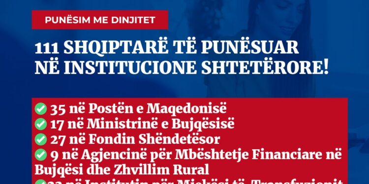 111 shqiptarë janë punësuar rishtazi në institucione kyçe të shtetit në pakë ditë, si rezultat i politikave tona të përfaqësimit të drejtë dhe adekuat, të cilat nuk njihnin zbatim real për më shumë se 20 vite!