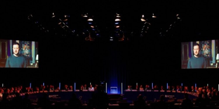 “Drejtësia është pikërisht linja nga e cila mund të fillojë lëvizja drejt paqes së sigurt. Armët japin mbrojtje fizike, por është drejtësia ajo që i kthen jetës ndjenjën e sigurisë që mbrohej me forcën e armëve”, është shprehur Zelensky.